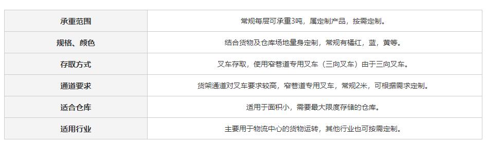 窄巷道貨架也為橫梁式貨架一種,因其貨架之間的通道比較窄,故名稱之為窄巷道貨架。
